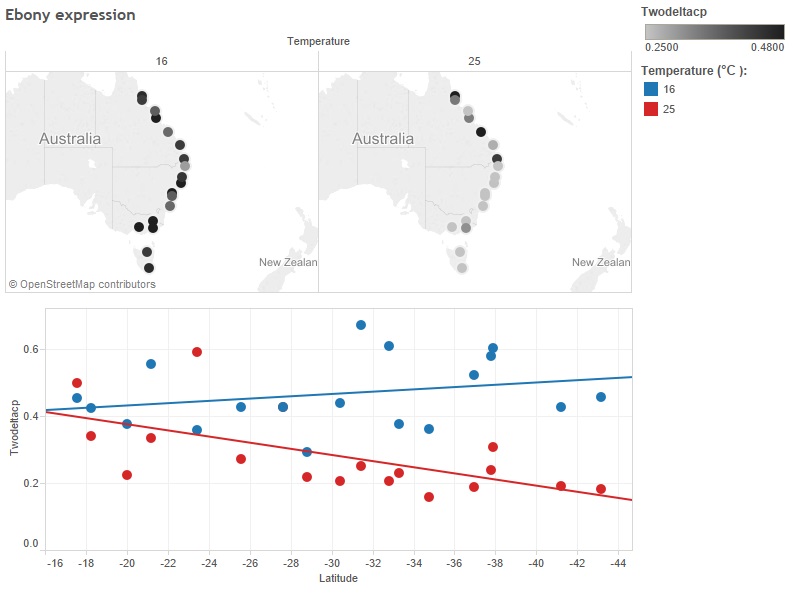 Telonis-Scott, Marina, Hoffmann, Ary A., and Sgrò, Carla M. (2011). The molecular genetics of clinal variation: a case study of ebony and thoracic trident pigmentation in Drosophila melanogaster from eastern Australia. Molecular Ecology 20: 2100-2110