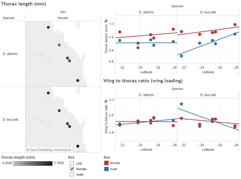 Loeschcke, Volker, Bundgaard, Jørgen, and Barker, J S F (2000). Variation in body size and life history traits in Drosophila aldrichi and D. buzzatii from a latitudinal cline in eastern Australia. Heredity 85: 423-433