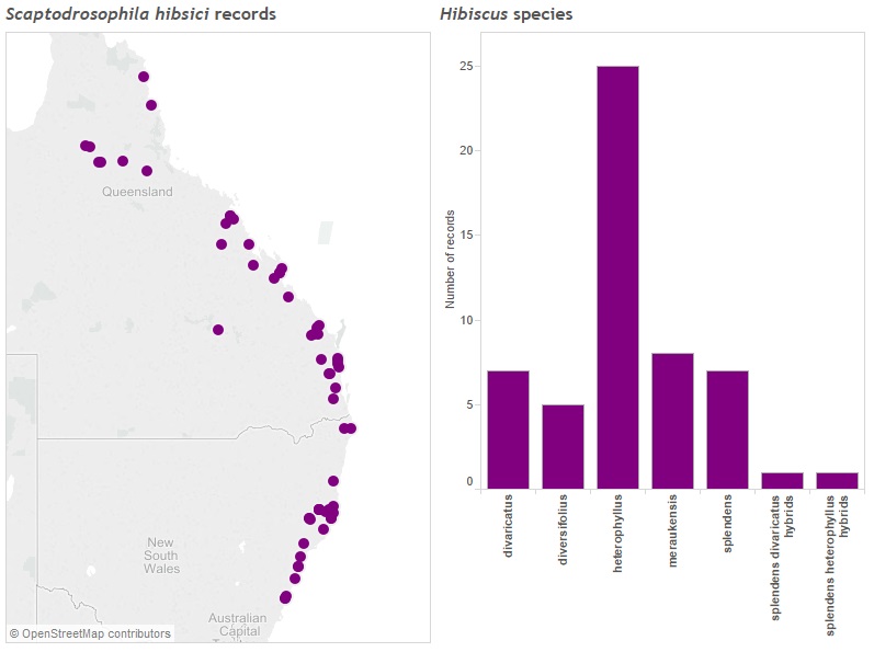 This data set contains collection records for Scaptodrosophila hibisci for 63 locations where flies were sampled directly from Hibiscus flowers in 1998 (Fig. 1). Hibiscus species, coordinates and altitude are reported for each location.